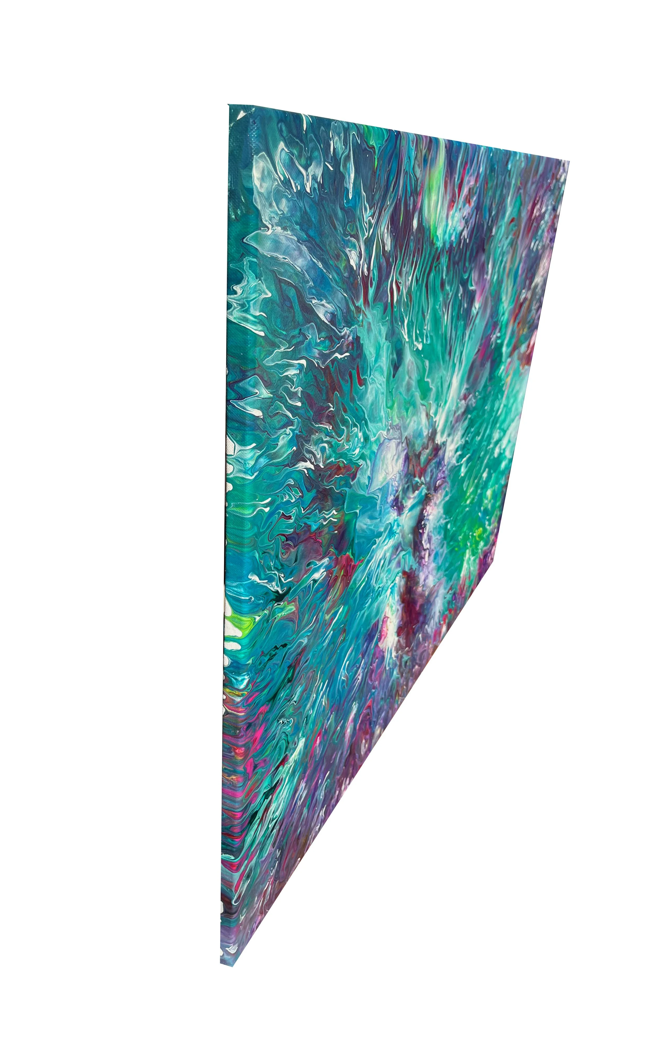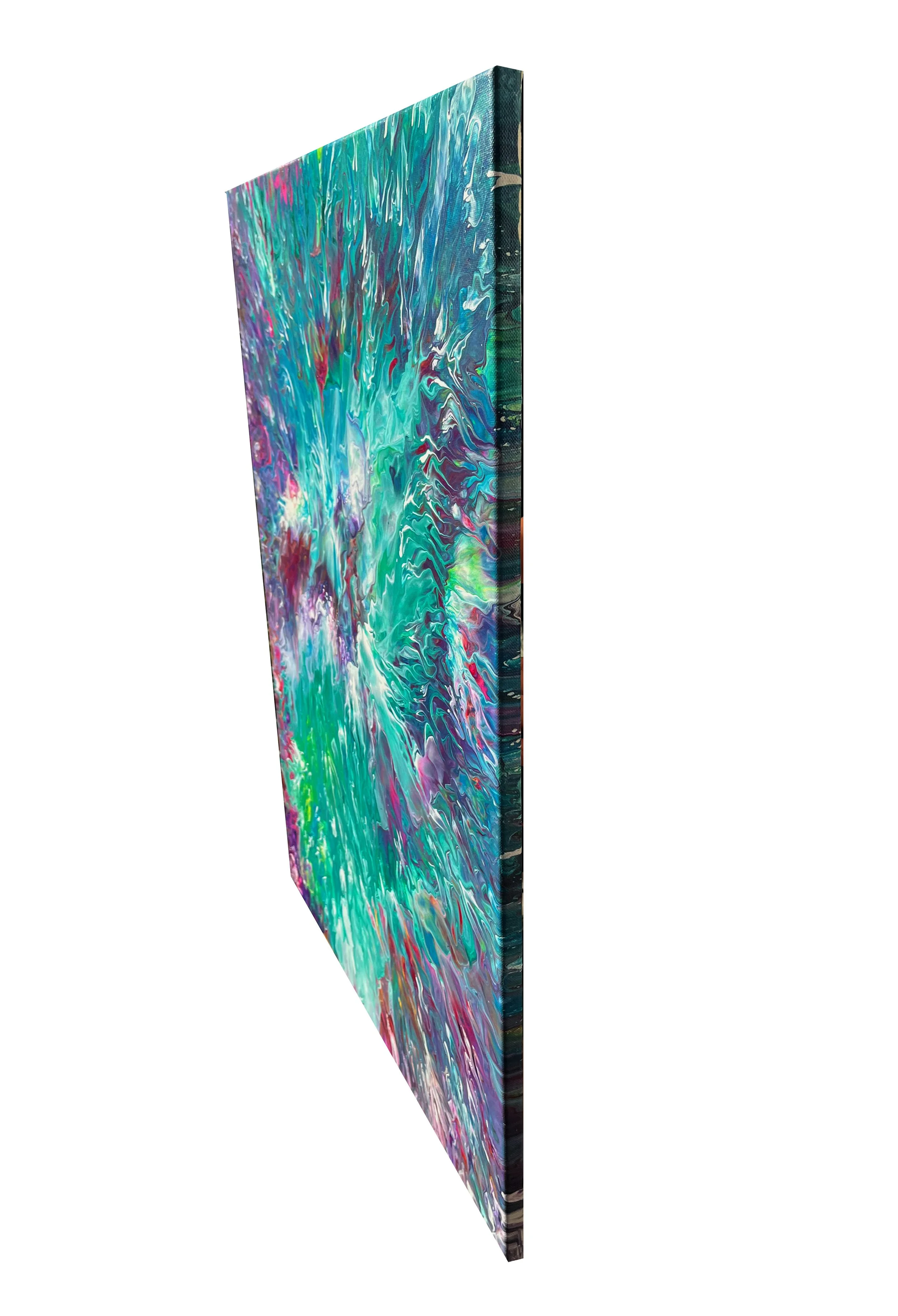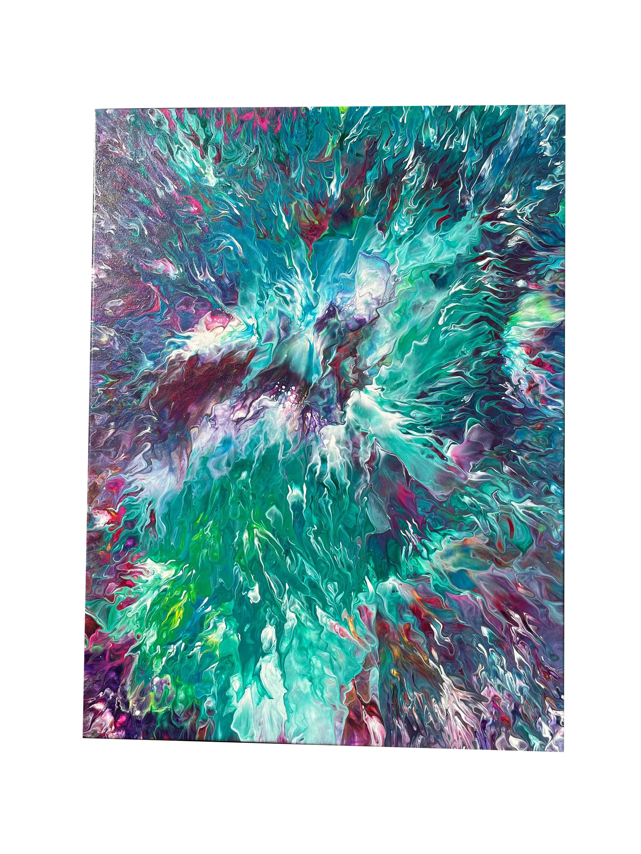 Farbkomponenten in seegrün, phtalogrün, türkisgrün, medium yellow, lemon yellow, quinacridone magenta, deep violet, magenta medium, Basis Untergrundfarbe: titanweiß, eigene Farbmischung, hochwertige Acryl Küstlerfarbe, Finish: matt