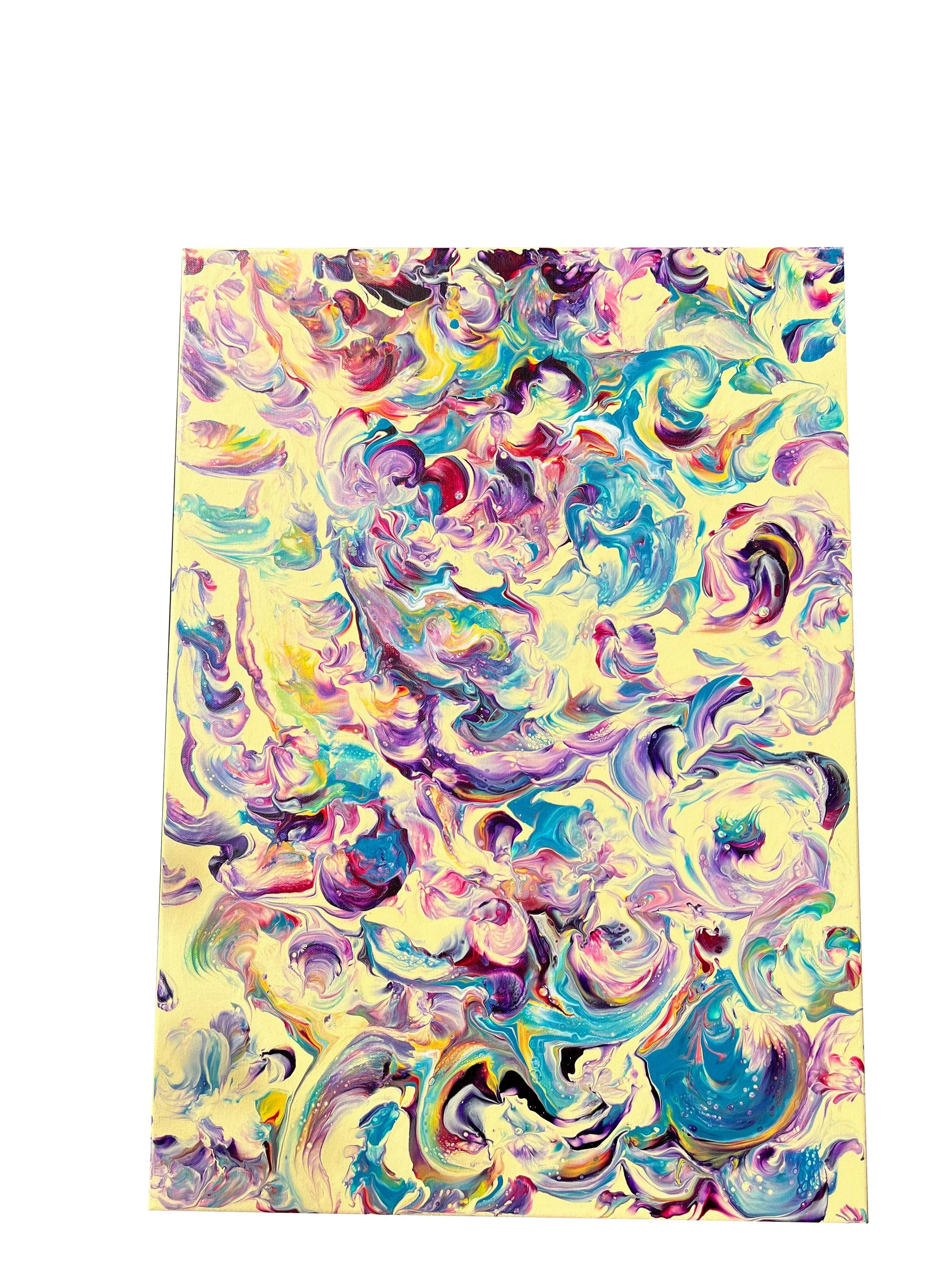 Farbkomponenten in türkisblau, phtalogrün, türkisgrün, perlblau, medium yellow, lemon yellow, quinacridone magenta, deep violet, magenta medium, Basis Untergrundfarbe: azogelb mix zinkweiß, eigene Farbmischungen, hochwertige Acryl Küstlerfarbe, Finish: matt